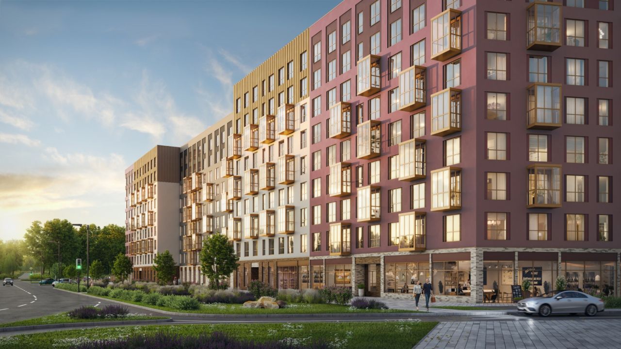 В отделке домов высотой до 11 этажей вы заметите и природные нотки — выбрали плитку в коричневых, серых и терракотовых тонах. А в декоративных вставках и панорамных балконах можно увидеть отсылки к скандинавской архитектуре.