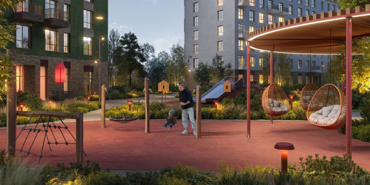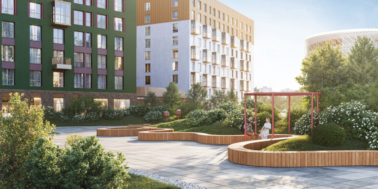 Озеленение уютных дворов встретит вас яркими красками северной природы. Заветные 10 000 шагов наберутся сами собой, пока вы прогуливаетесь вдоль дорожек, мощенных натуральным камнем. А может быть, вам захочется активно провести время с соседями или детьми. Занимайтесь йогой в воркаут-пространстве, практикуйте джоггинг на зеленом бульваре или сыграйте партию в настольный теннис. Для хвостатых питомцев предусмотрели догхабы. Для проведения концертов и творческих вечеров — площадь с амфитеатром.